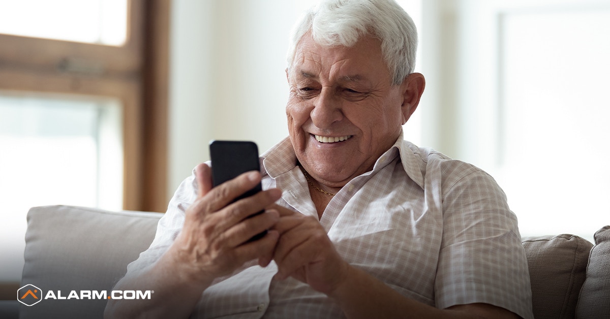 Steve added his wife and his siblings to the account, enabling them all to check in with his dad through their Alarm.com mobile apps.